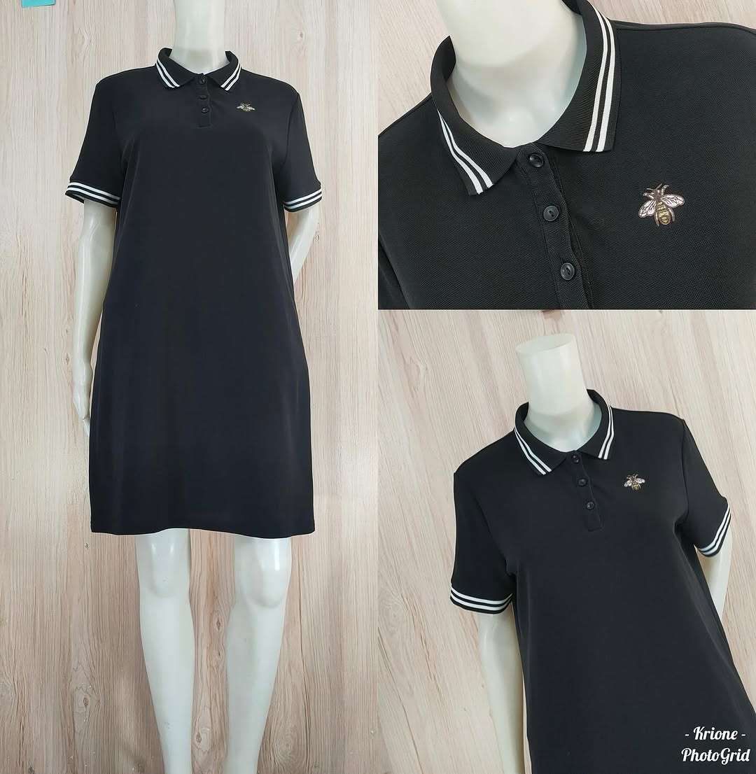The HQ Piqué Polo Dress in black with white tipping streamlines casual dressing with a neat collar and smooth piqué knit for all‑day comfort.