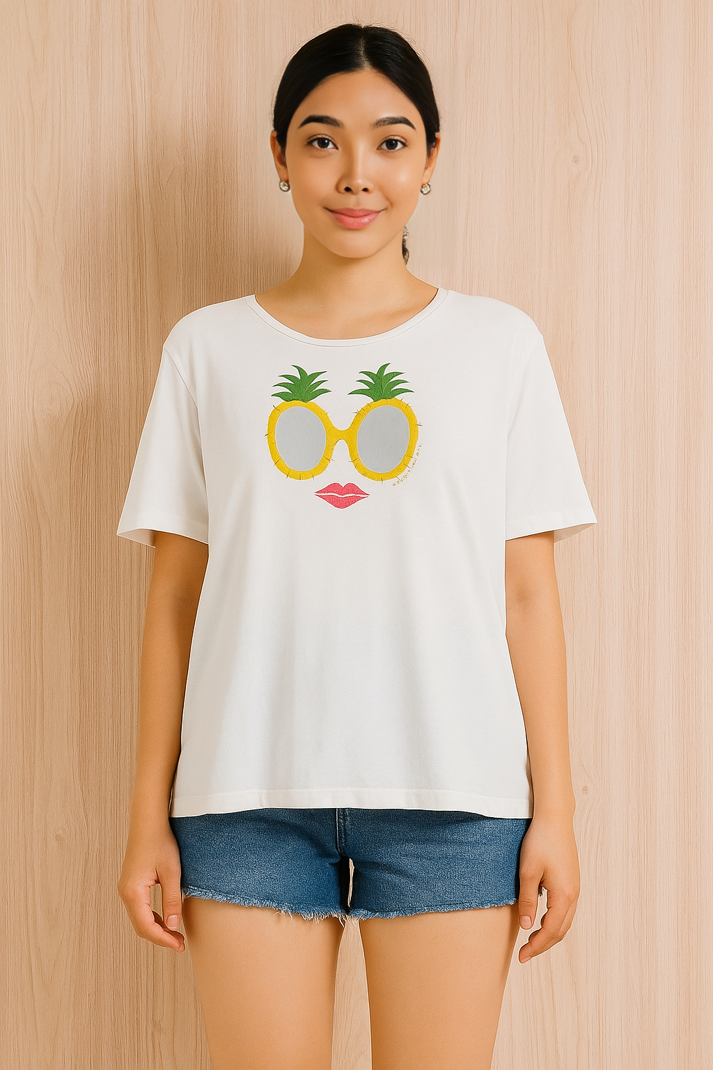 • Front pineapple-and-sunnies graphic for a fun twist