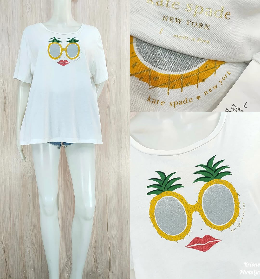 The Kate S Pineapple Graphic Tee in white and yellow brings a cheerful touch to casual looks with a smooth cotton feel.