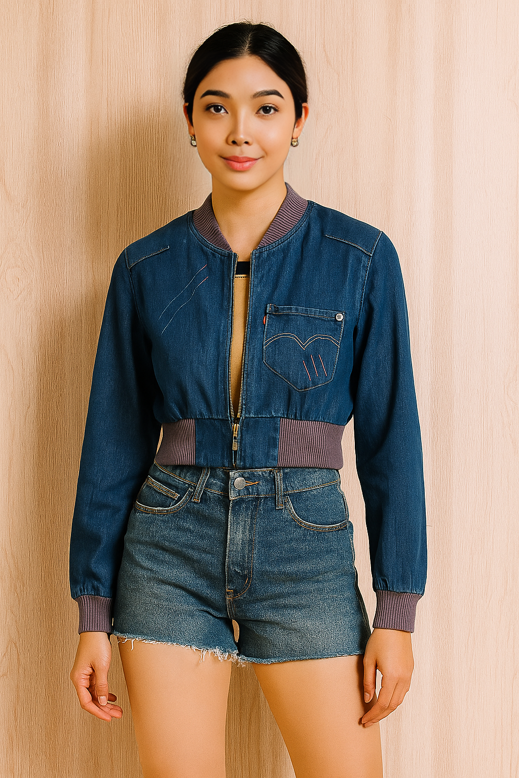 A cropped denim bomber with rib trims for a fresh, sporty take on the classic jacket 💙