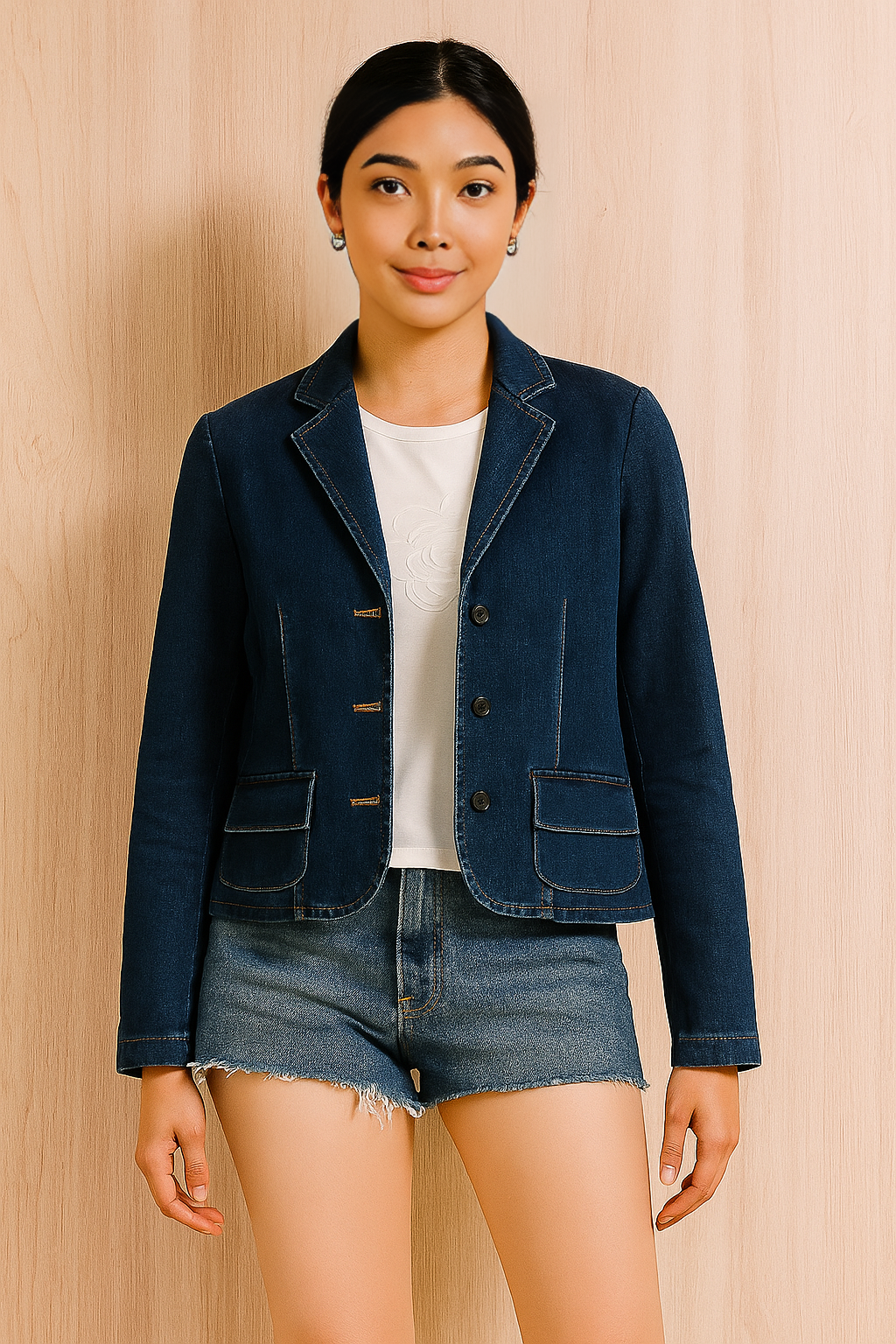 Ralph Lauren denim blazer with notch lapels and flap pockets—structured yet easy, delivering a refined layer over tees or blouses. A preloved staple for smart-casual days.