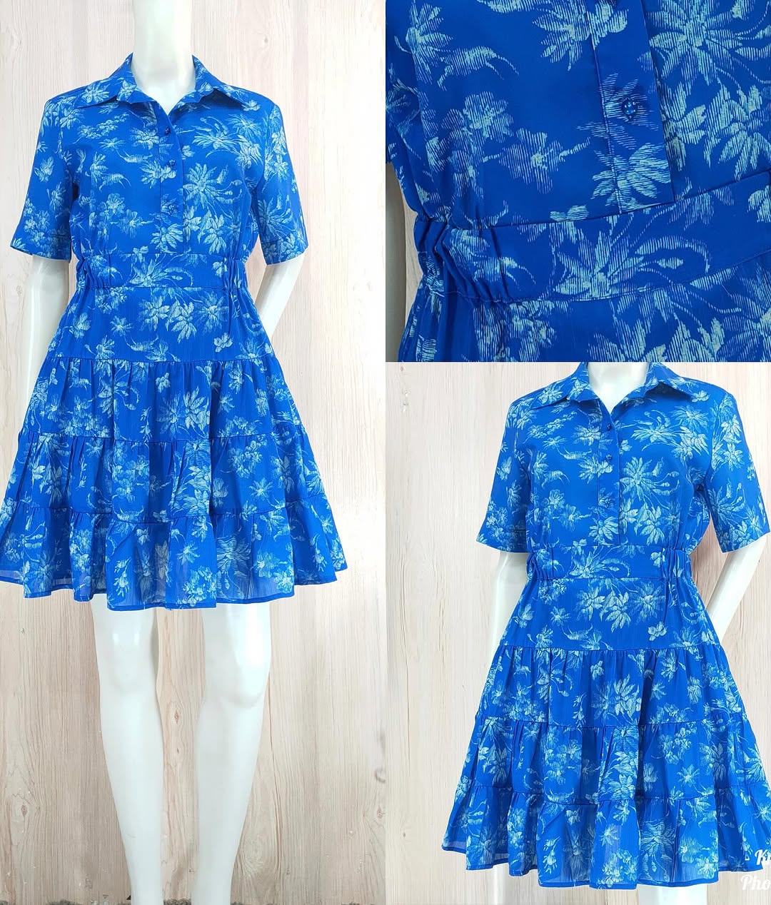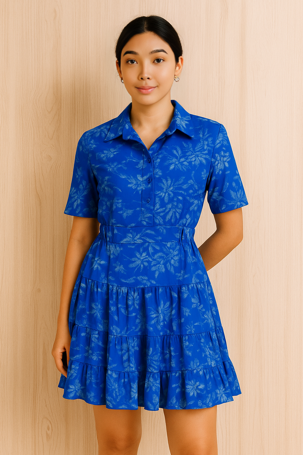A breezy blue shirt dress with subtle floral texture and soft tiering for an easy, feminine silhouette 💙